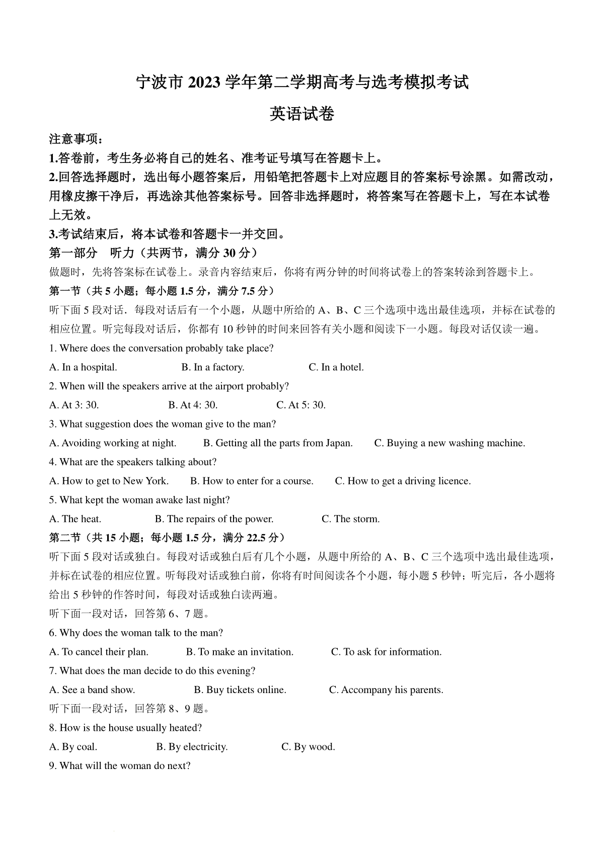 2024届浙江省宁波市高三下学期第二次模拟考试英语试题
