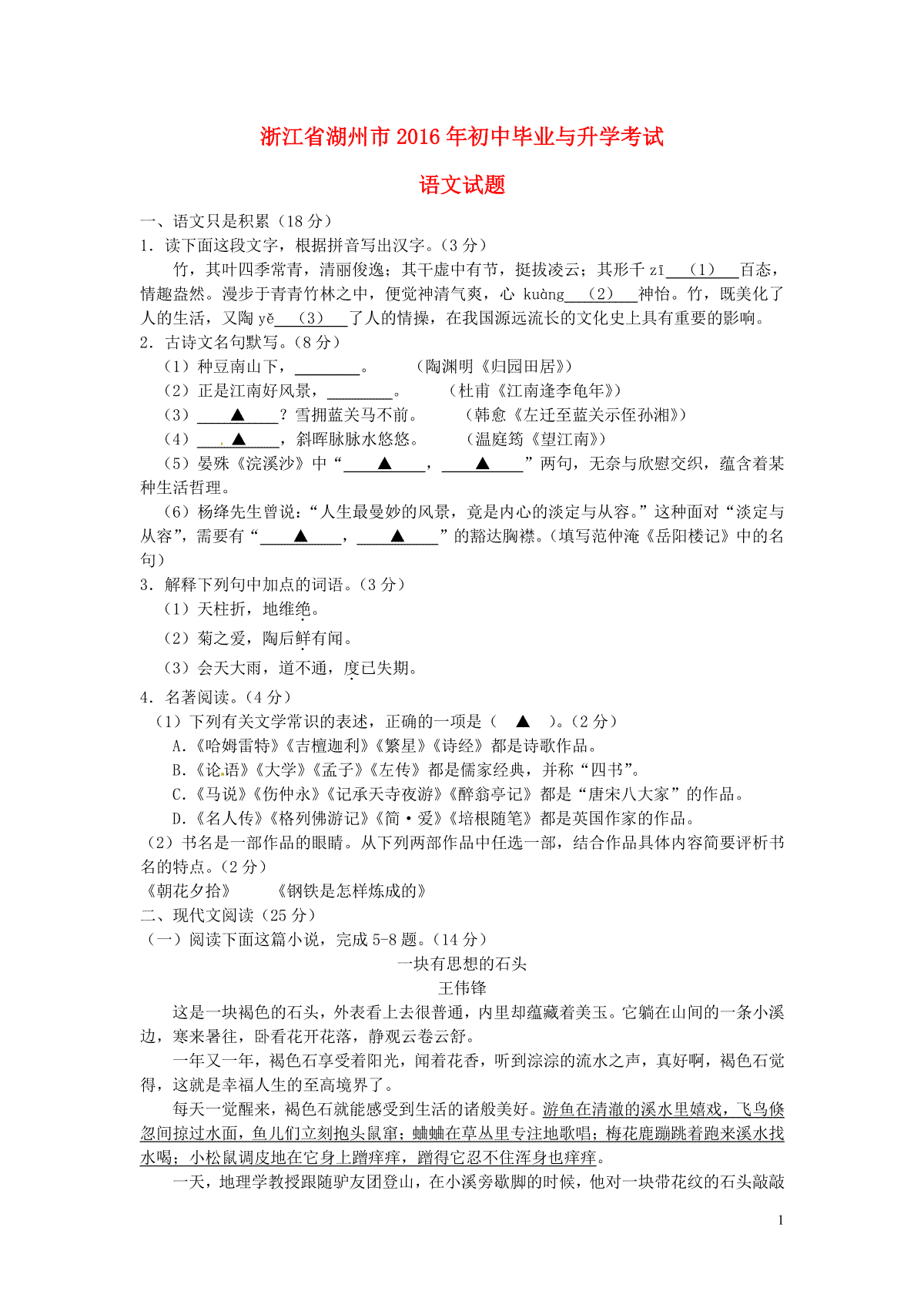 浙江省湖州市2016年中考语文真题试题(含答案)