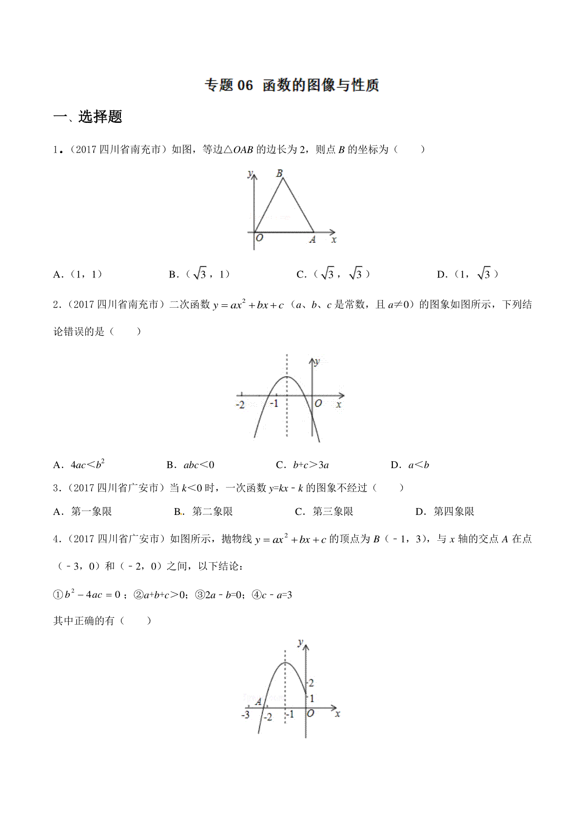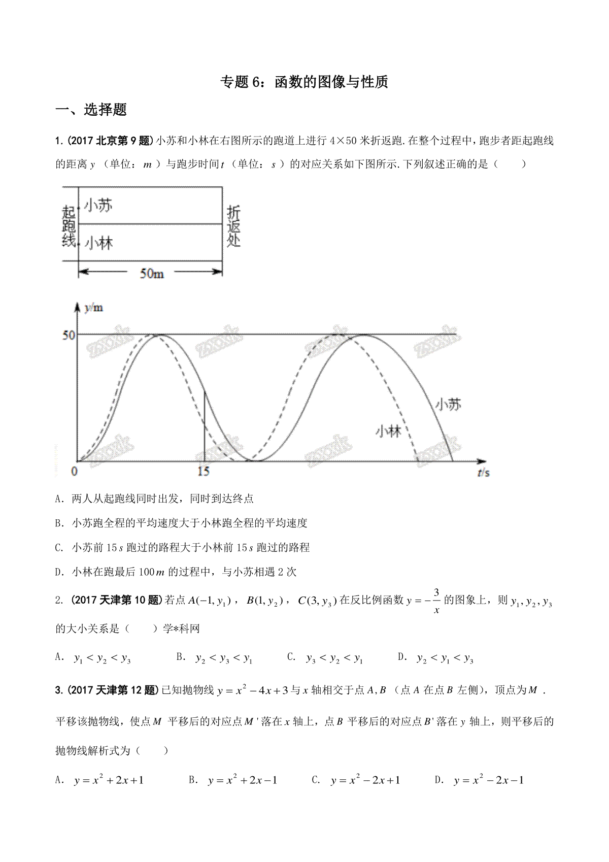 专题06 函数的图像与性质-2017年中考数学试题分项版解析汇编(原卷版)