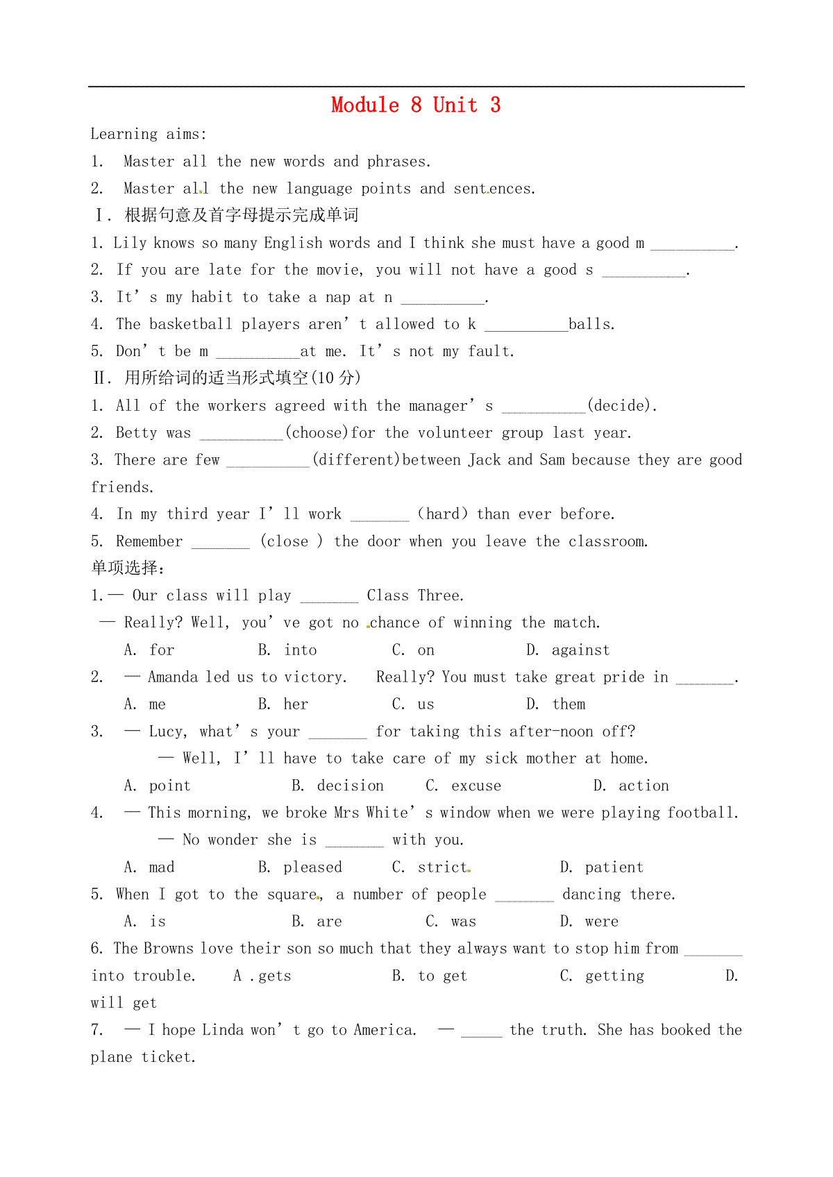 九年级英语上册 Module 8 Unit 3 Language in use学案(无答案)(新版)