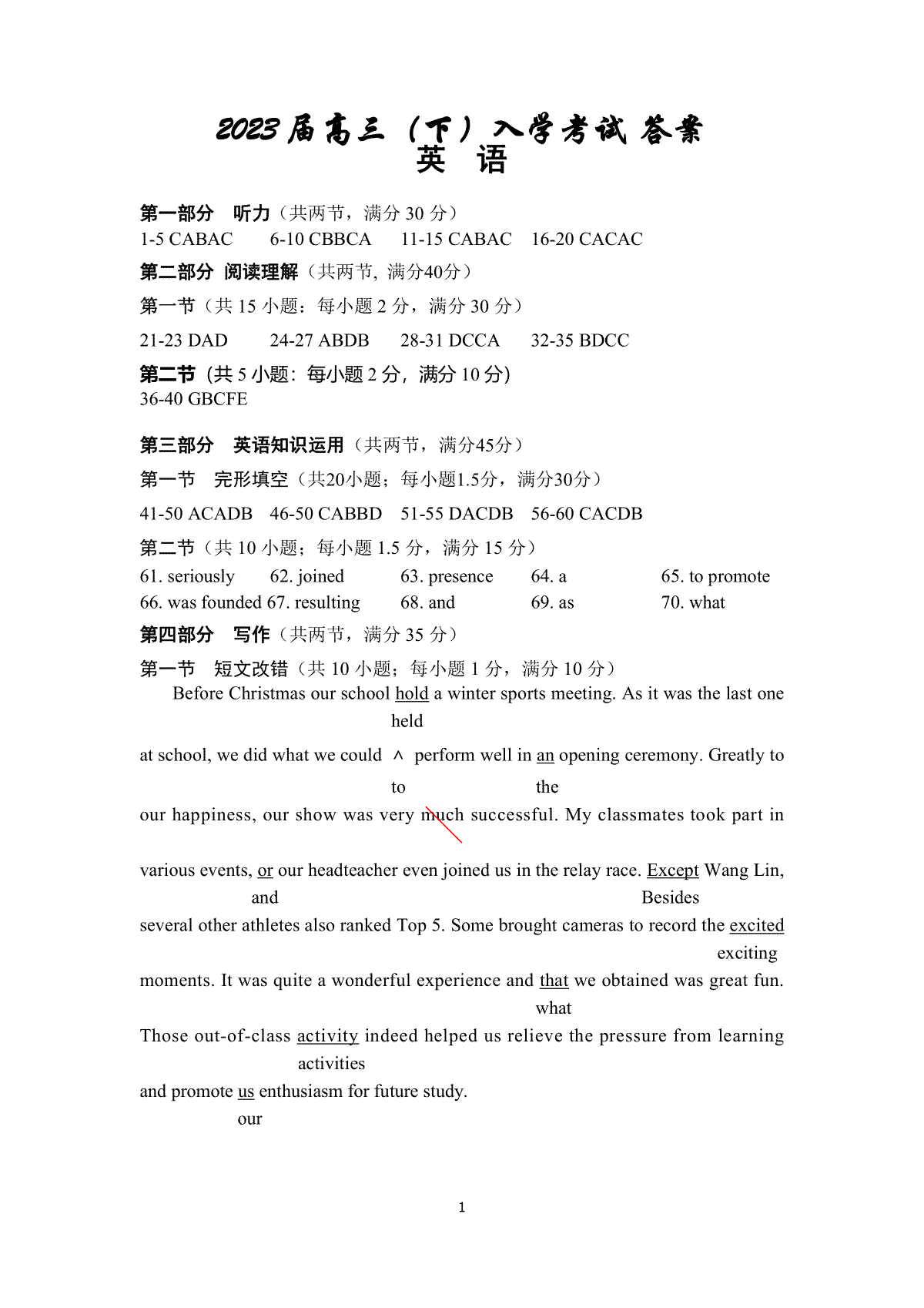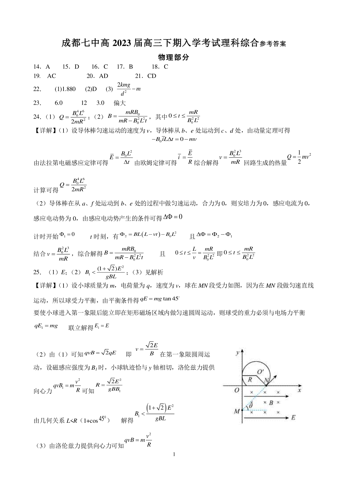 四川省成都市第七中学2022-2023学年高三下学期入学考试语文答案
