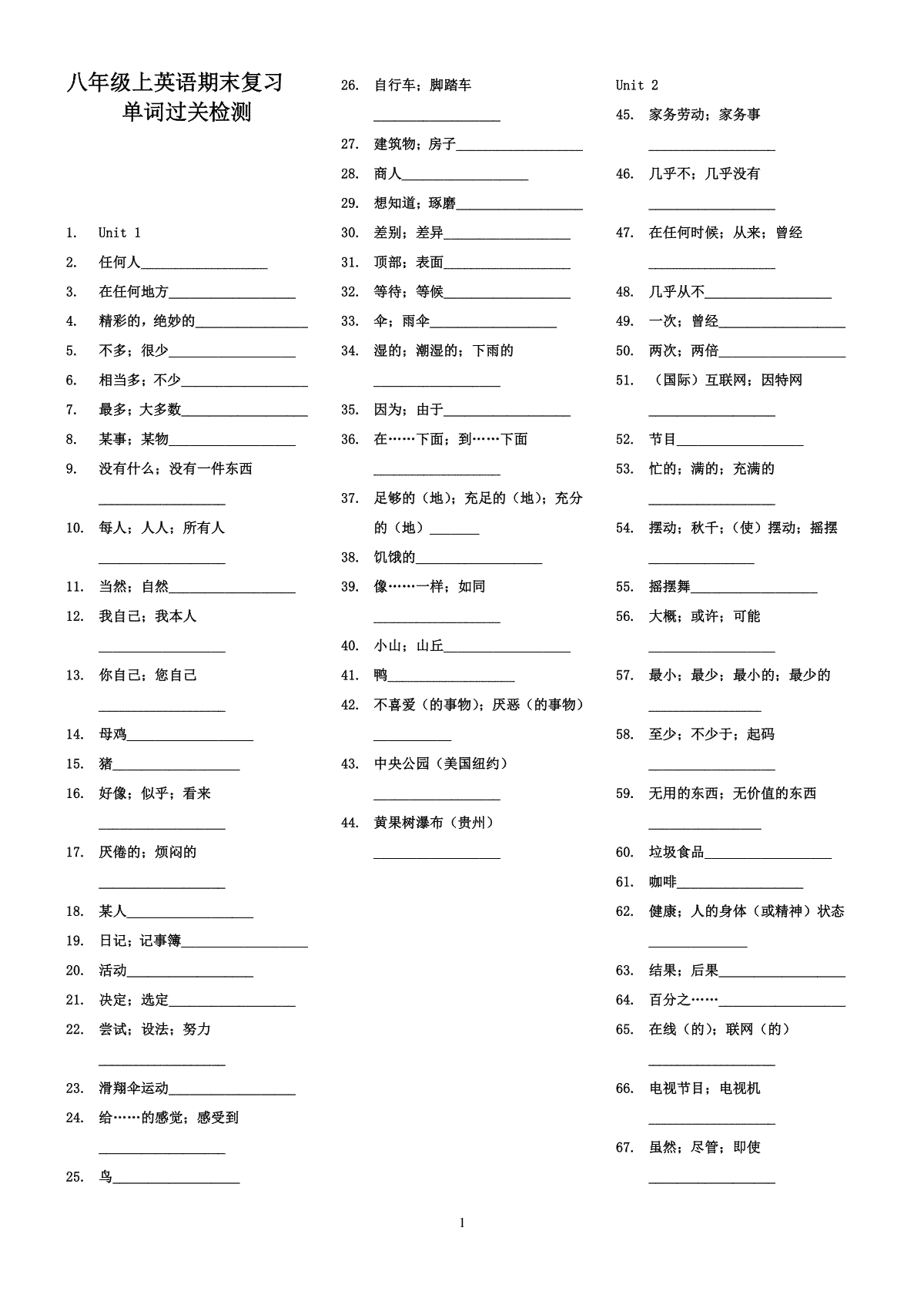 最新人教版八年级上册英语知识点(单词、短语、句子、语法、练习)