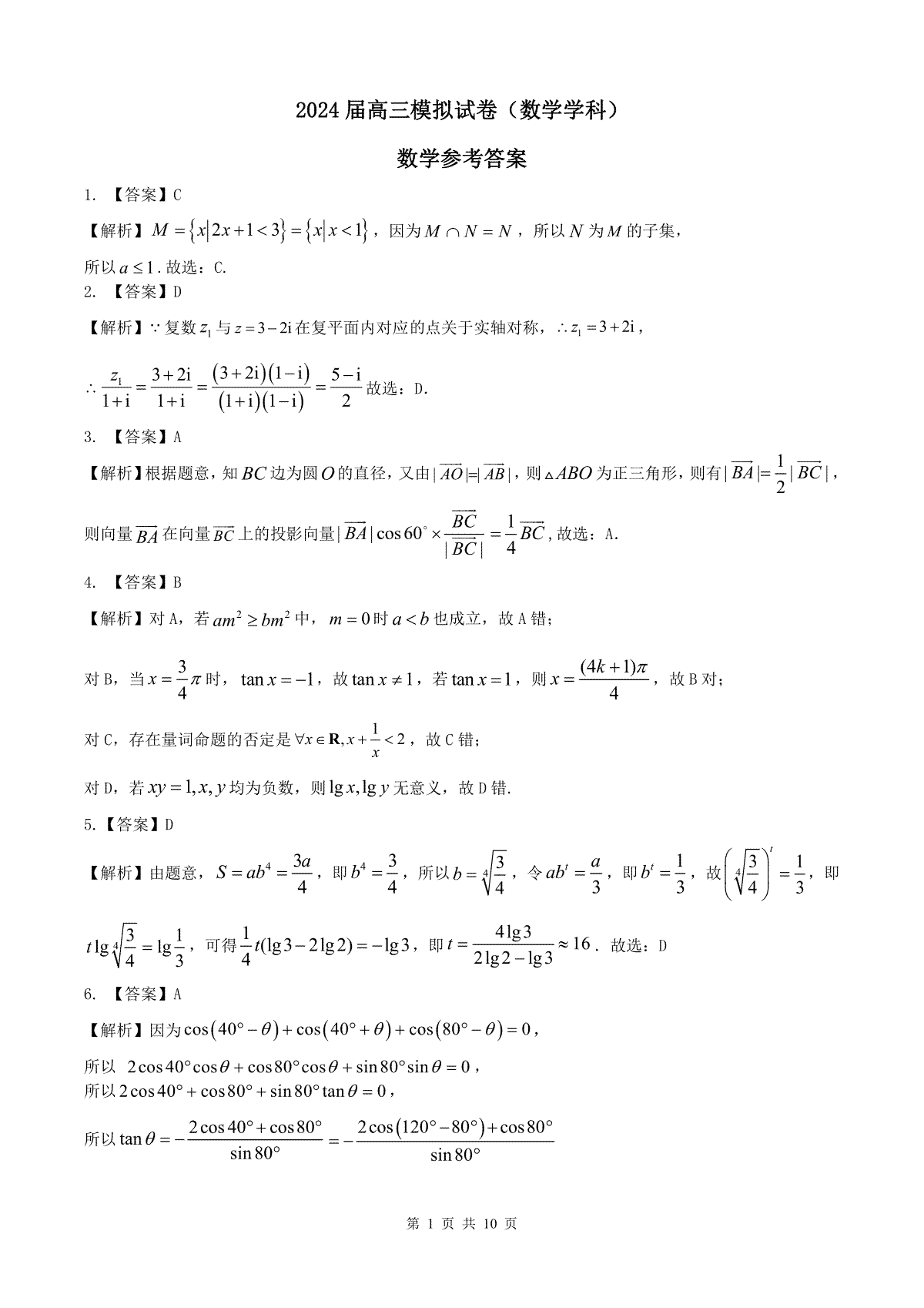 湖南省湘西州吉首市2024届高三上学期第二届中小学生教师解题大赛 数学参考答案
